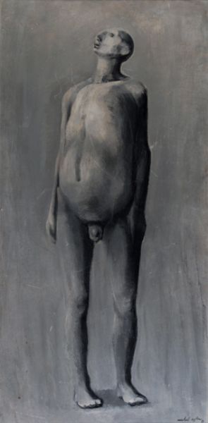STUDY OF A NUDE MAN LOOKING SKYWARDS, FULL LENGTH