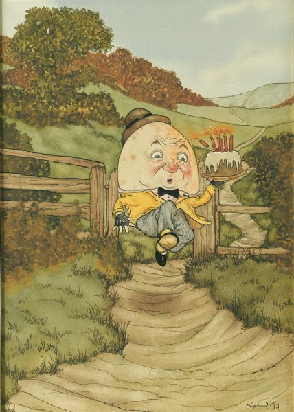 Humpty Dumpty with a birthday cake