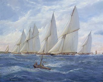 | Britannia and her opponents on the start line, waiting for the flag | |