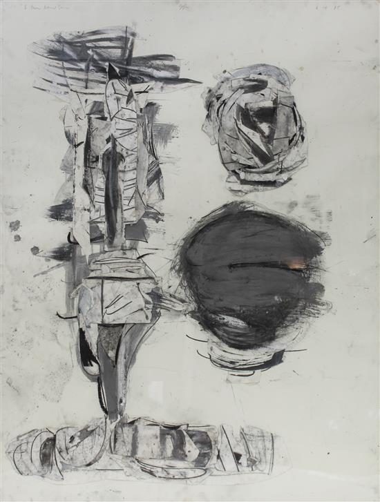 Chalk charcoal, chalk, brush and ink collage on paper