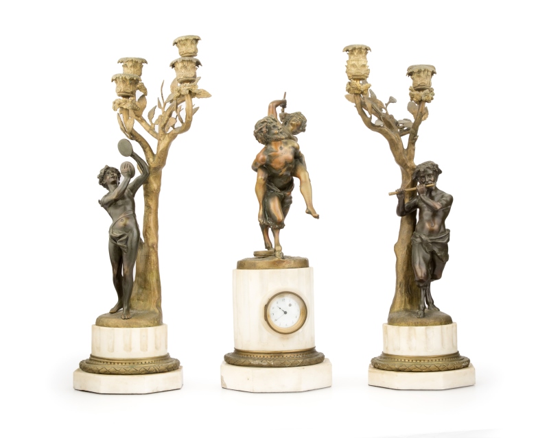 a gilt-bronze and marble clock and garniture,