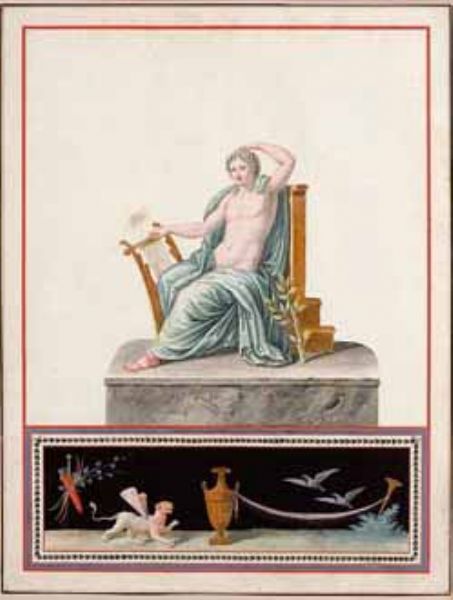 | Apollon assis sur un piédestal, dans un encadrement décoratif | |