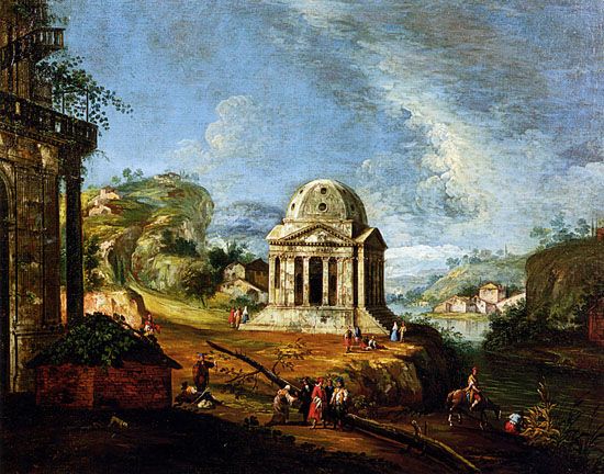 Caprice architectonique avec petit temple