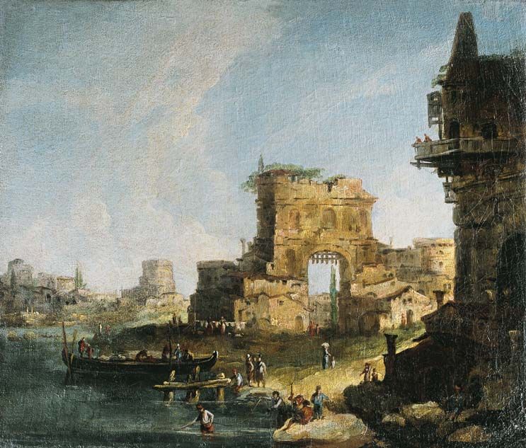 RUINEN-IDEALLANDSCHAFT MIT MEERESBUCHT,