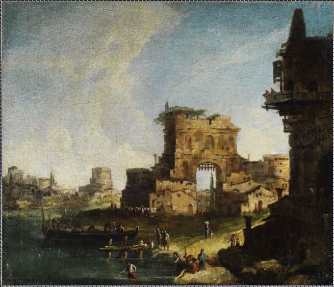 SÜDLICHE LANDSCHAFT MIT ANTIKEM TRIUMPHBOGEN