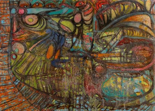 Ink acrylic, resin and natural colors on canvas