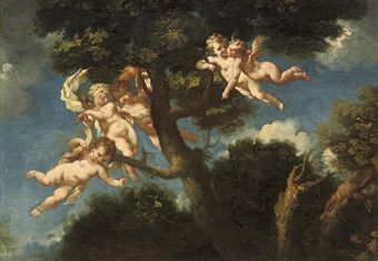 Putti disporting in a landscape