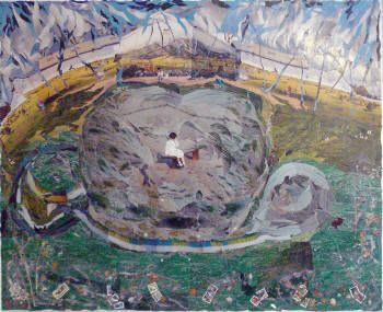 Photograph collage on canvas, framed