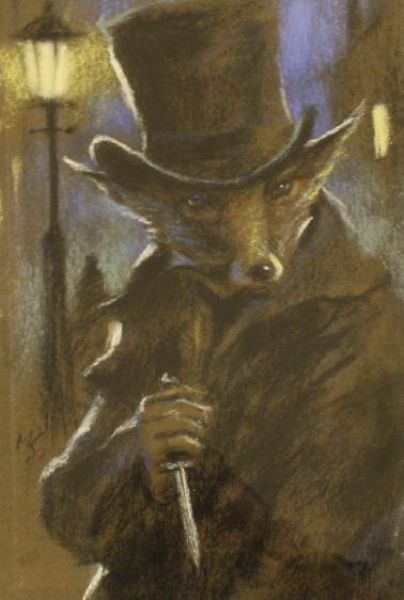 portrait of a fox dressed as Jack The Ripper