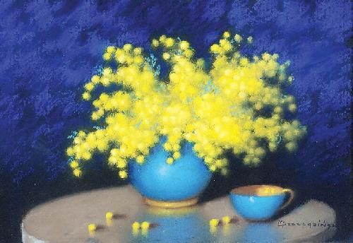 Mimozy w niebieskim wazonie
