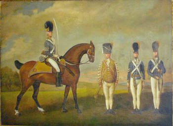 Cavalry officer mounted with artillery men