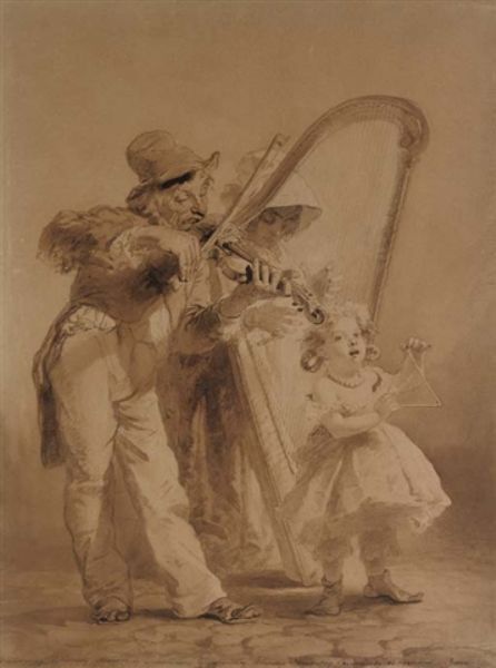 | Pencil and brown wash on textured | |