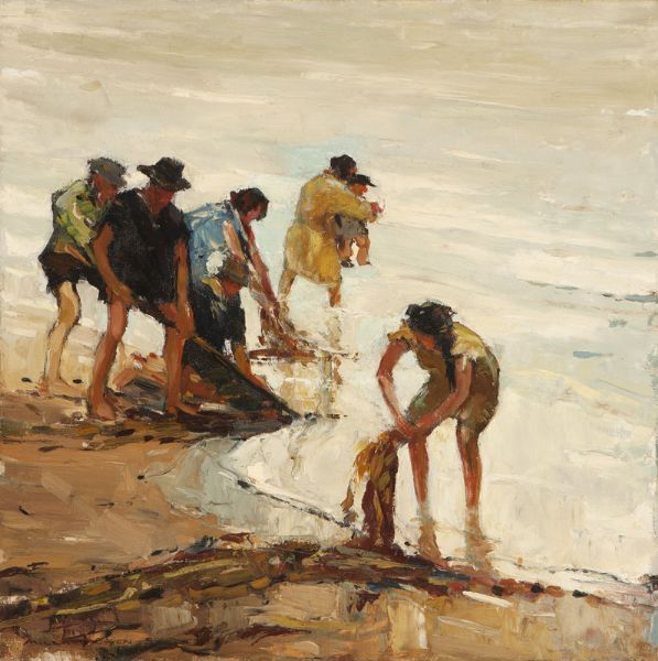 | ''On the Beach'', Figures Pulling Fish Nets at a Beach | |