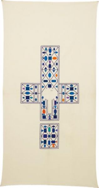 Embroidery and acrylic on fabric