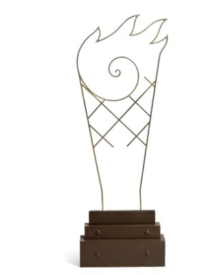 Metal on a base of painted wood