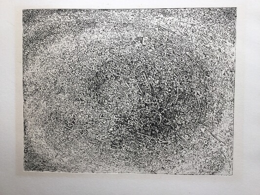 Etching mounted on cardboard