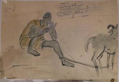 Dessin, aquarelle sur papier contrecollé sur cansson, signé en bas à gauche et titré en bas à droite "Sacha" | |