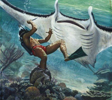 Double Trouble, The Giant Manta-Ray, Adventure cover, February 1956