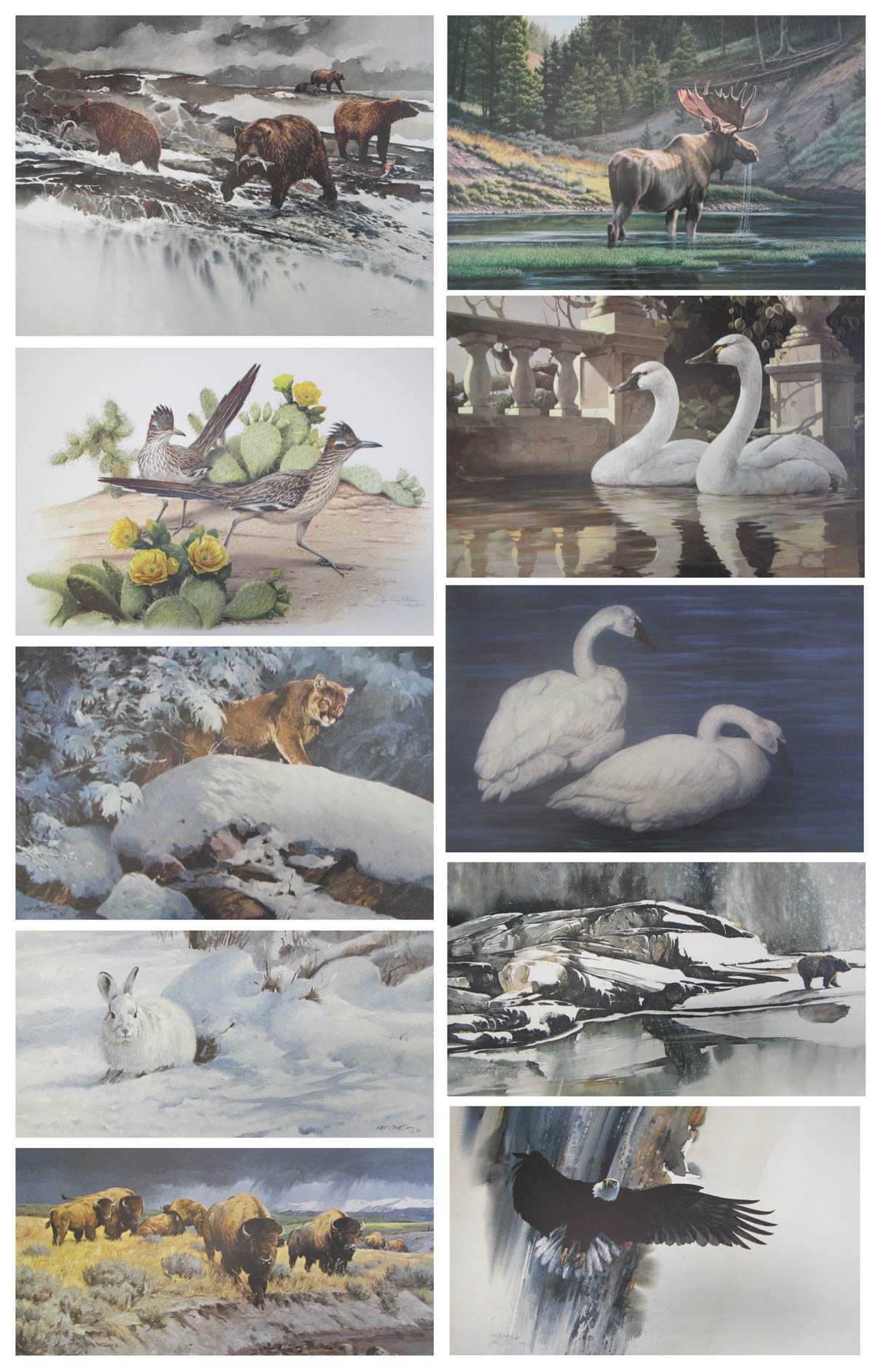 "Winter Reflection," and "McNeil River Fishermen"; Ken Carlson (United States, born 1937) three prints, "Monarch of the Plains - Bison," "In Winter Coat - Snowshoe Hare," and "Evening Shadows - Cougar"; Mario Fernandez (Minnesota/Cuba, 1946-2012) one | |