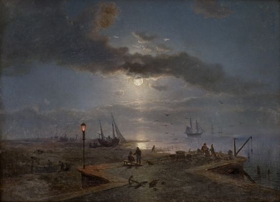 Havneparti i måneskinn 1857