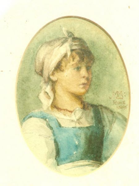 | Portrait of a young girl, bust length turned to the left, wearing a head scarf | |