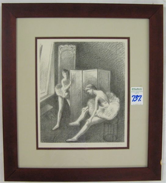 | Study of an older ballerina with hurtful knees while younger dancer looks on | |