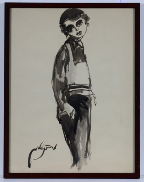Stehender Knabe mit Kippa, im Dreiviertelprofil den Betrachter anblickend.