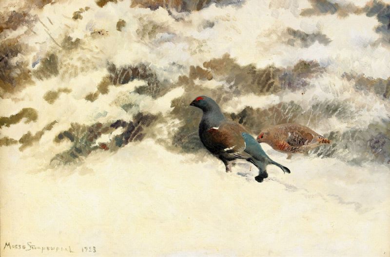 Vinterlandskap med orre och orrhöna