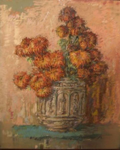Bronze Chrysanthemums in a Font-Shaped Vase