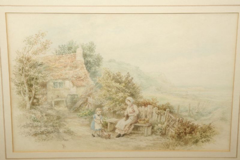 Mother and child beside a cottage