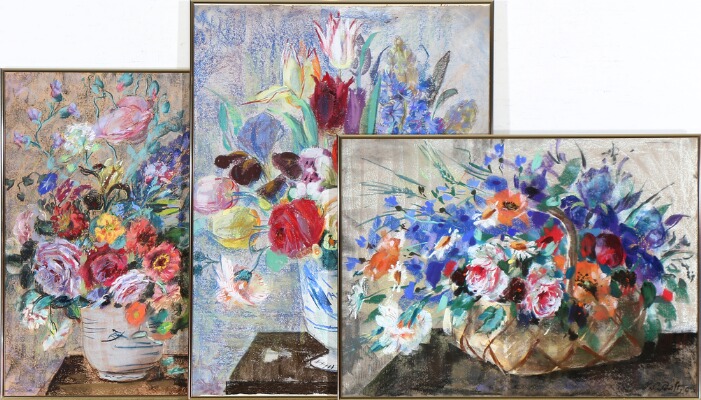 Three still lifes with flowers