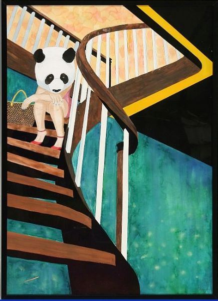Composition with girl sitting on the stairs.