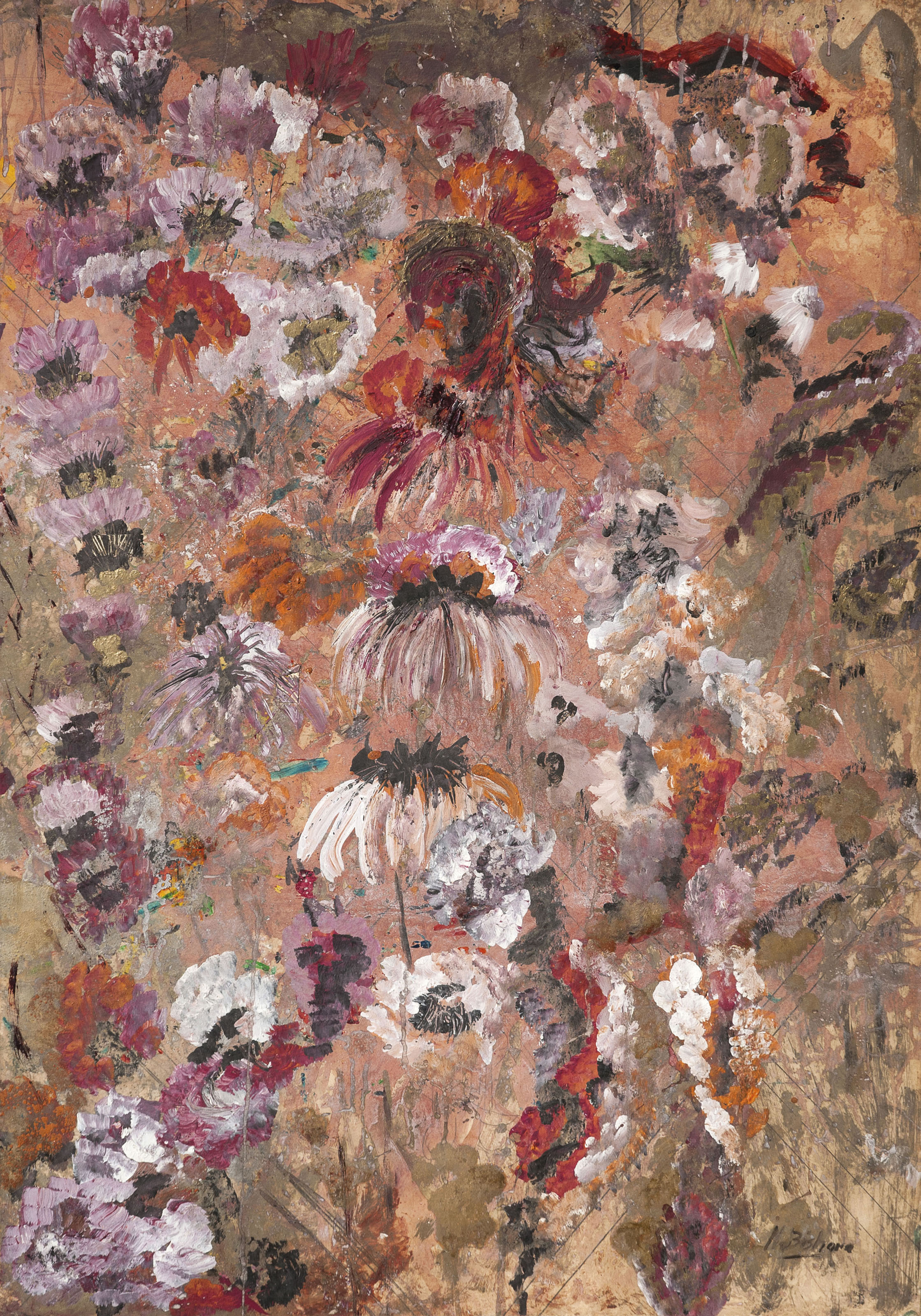 | Oil gold paint, paper and graphite laid down on board | |