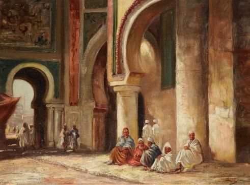 | Personnages assis dans la Mosqué Ibn Tulun, au fond la Mosquée Muhamed Ali | |