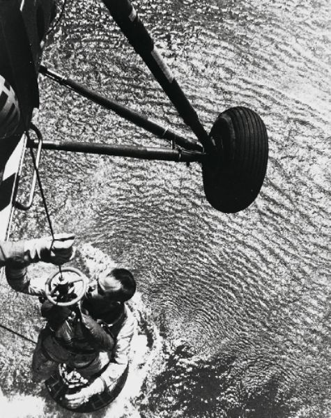 | ASTRONAUT ALAN B. SHEPARD JR., AS HE WAS RECOVERED BY A U.S. MARINE HELICOPTER RECOVERY TEAM, MISSION MERCURY-REDSTONE 3 | |