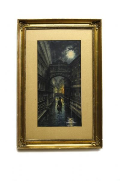 Gondolière unter der Seufzerbrücke in Venedig bei Nacht