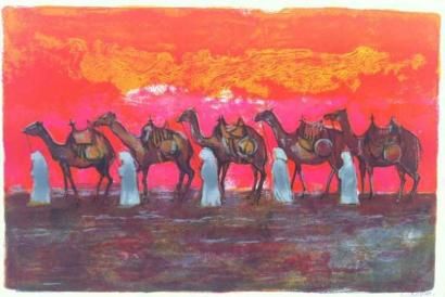 Caravane au soleil couchant