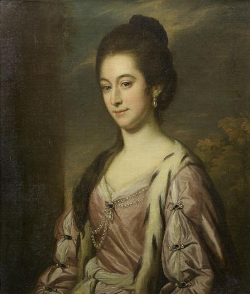 Portrait of Mrs Henry Cresset Pelham, half-length, in a pink dress
