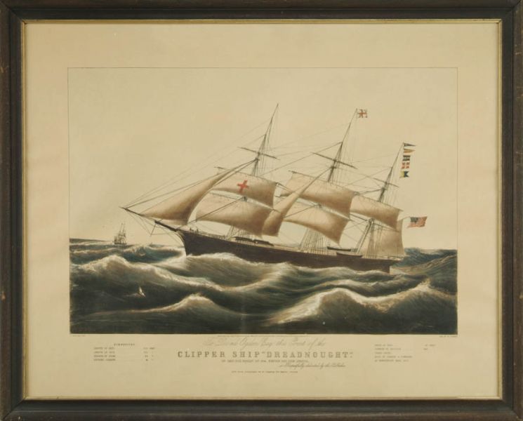 | Unknown Large folio edition shows the clipper ship sailing right to left with U.S. flag | |