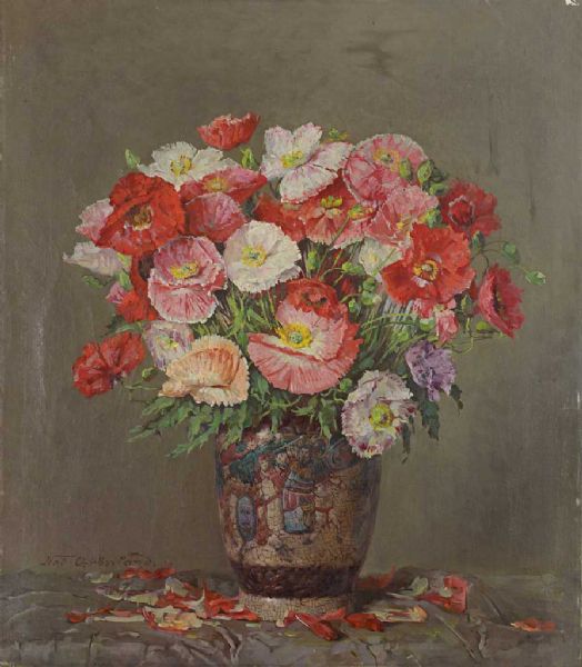 Prachtvoller Mohnblütenstrauß in Chinavase