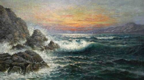Sunset over crashing waves