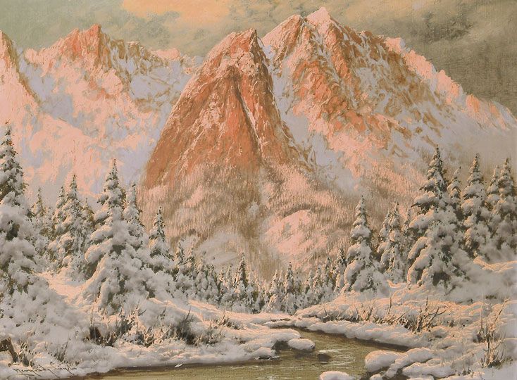 Hófödte hegycsúcsok naplementében