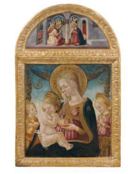 | La Vierge à l'Enfant entourés d'anges, sommé d'un fronton contenant l'Annonciation | |