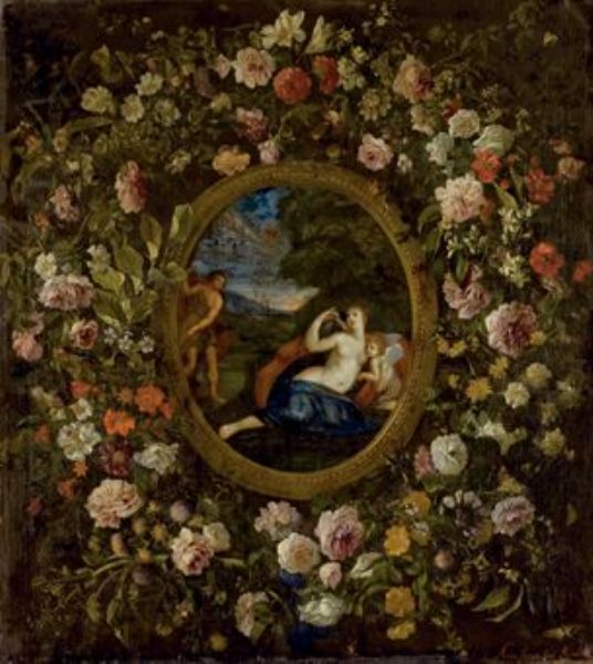 | Vénus, Apollon et l'Amour entourés d'une couronne de fleurs | |