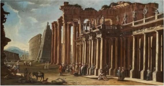 | An architectural capriccio with a colonnade and the Colosseum beyond | |