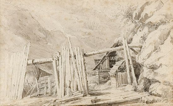 | A Wooded Alpine Landscape with Settler's Hut | |