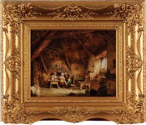 | Interior of a cobbler’s cottage; three figures and a child around a table | |