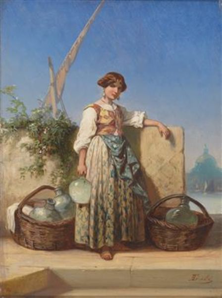 Glass Seller Against a Silhouette of Santa Maria della Salute in Venice