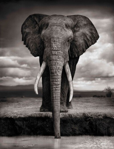Elephant drinking, Amboseli
