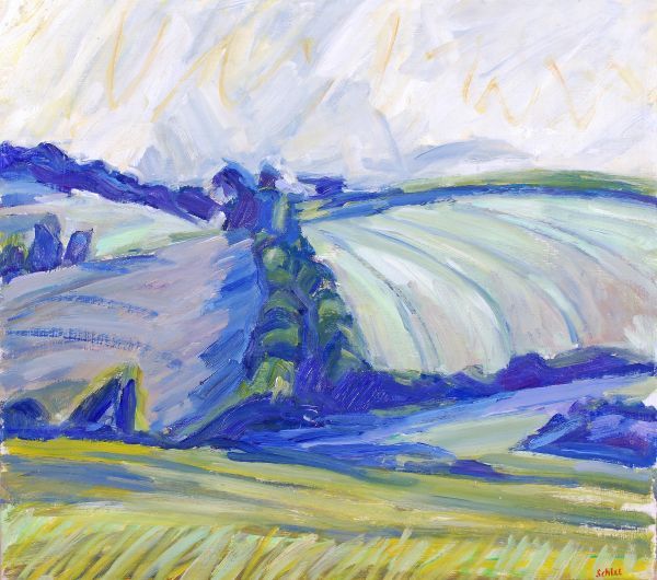Bright sky and green fields